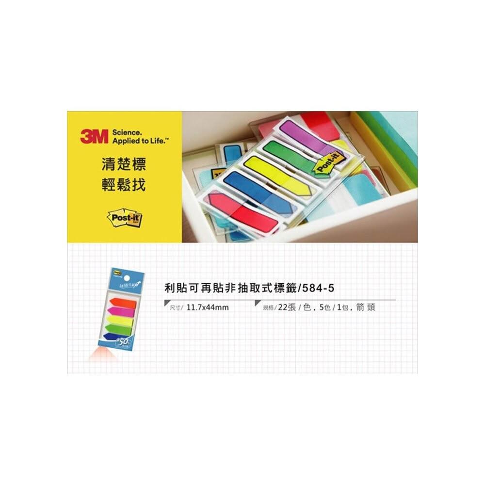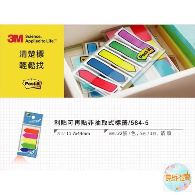3M3M Post-it利貼 可再貼非抽取式標籤 箭頭型- 五色584-5 便條紙標籤貼紙