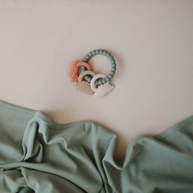 Mushie食品級矽膠固齒器|嬰兒咬咬玩具 手握環設計(恐龍)