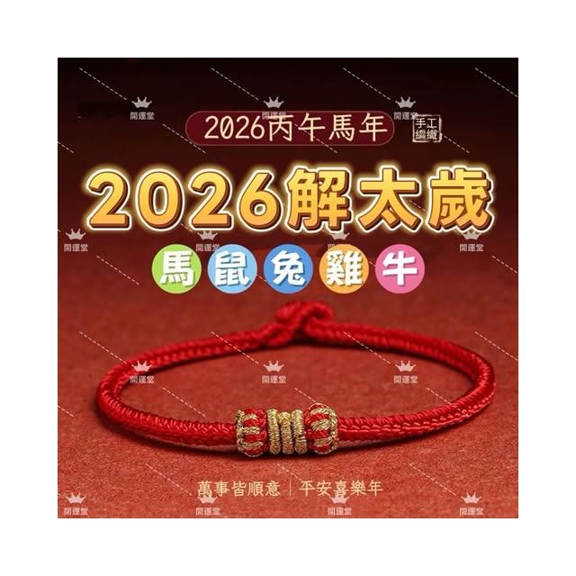 開運堂2026年解太歲✨紫南宮過爐✨本命年紅繩手鍊生肖解太歲手工編織男女手繩兔鼠龍馬雞