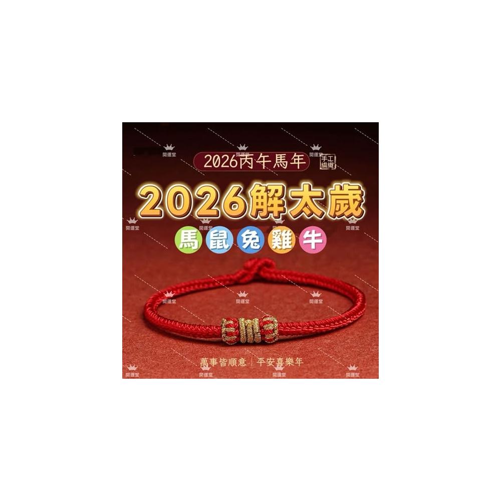 開運堂2026年解太歲✨紫南宮過爐✨本命年紅繩手鍊生肖解太歲手工編織男女手繩兔鼠龍馬雞