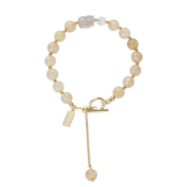 開運堂天然水晶手鍊 金髮晶手串 灰月光貔貅手飾 天然水晶手鏈 招財平安開運轉宗教飾品