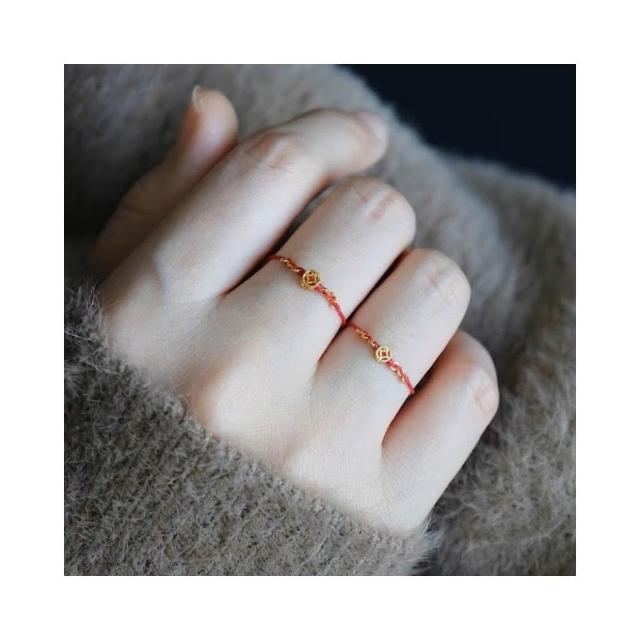 開運堂🔥現貨🔥 錢多多銅錢紅繩戒指 🔥本命年小錢幣戒指女小眾設計細編繩食指戒招財聚財可調式復古風