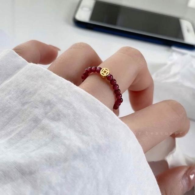 開運堂🔥現貨🔥 招財銅錢水晶戒指 戒圍:5.5CM極細2MM迷你S925銀天然彩虹碧璽戒指戒子珍珠水晶質感祝福好運 開運堂