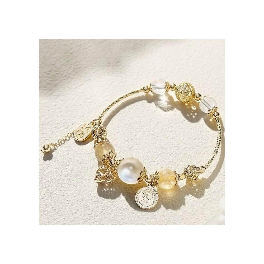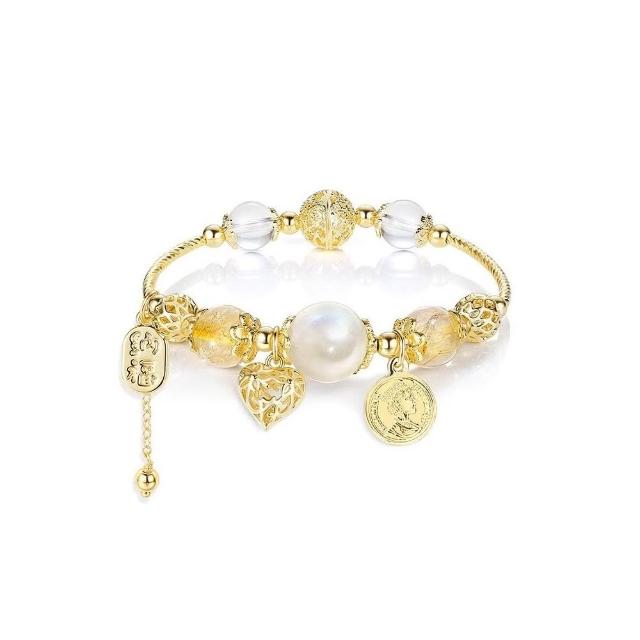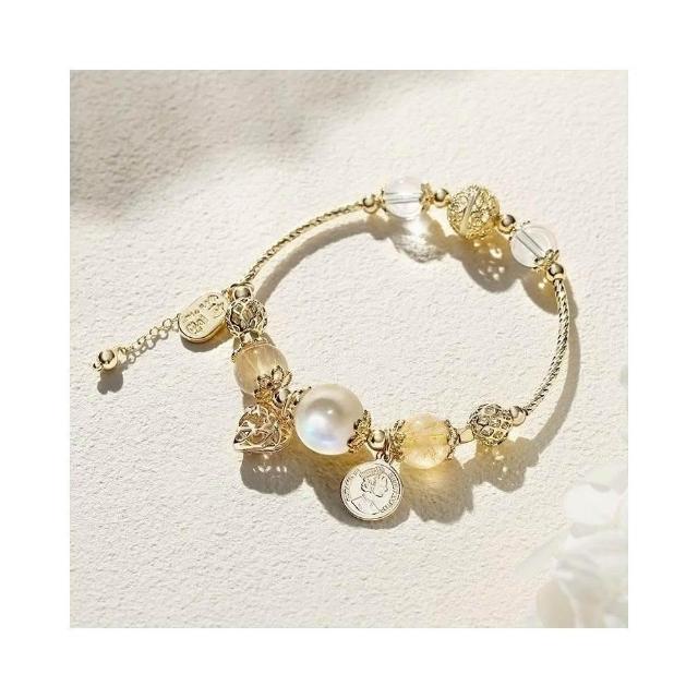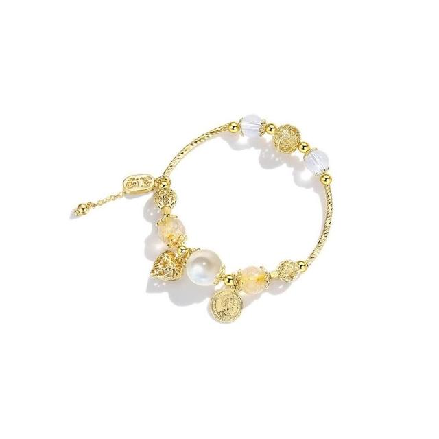 開運堂🔥現貨🔥天然光石金髮晶白水晶溫柔清澈浪漫桃心混搭女高級感手鍊手串開運堂