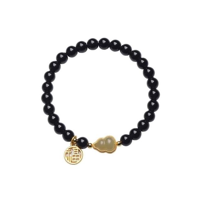 開運堂天然黑曜石水晶手鍊和田玉葫蘆手串情侶手串情侶禮物