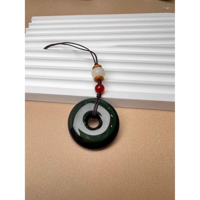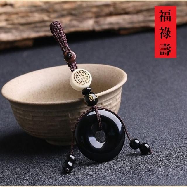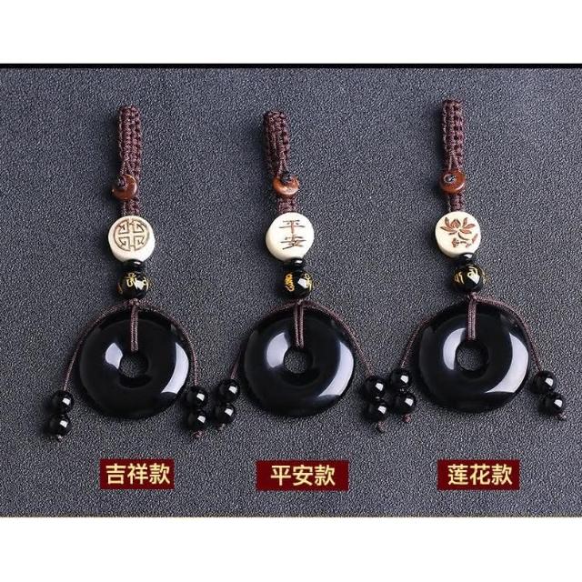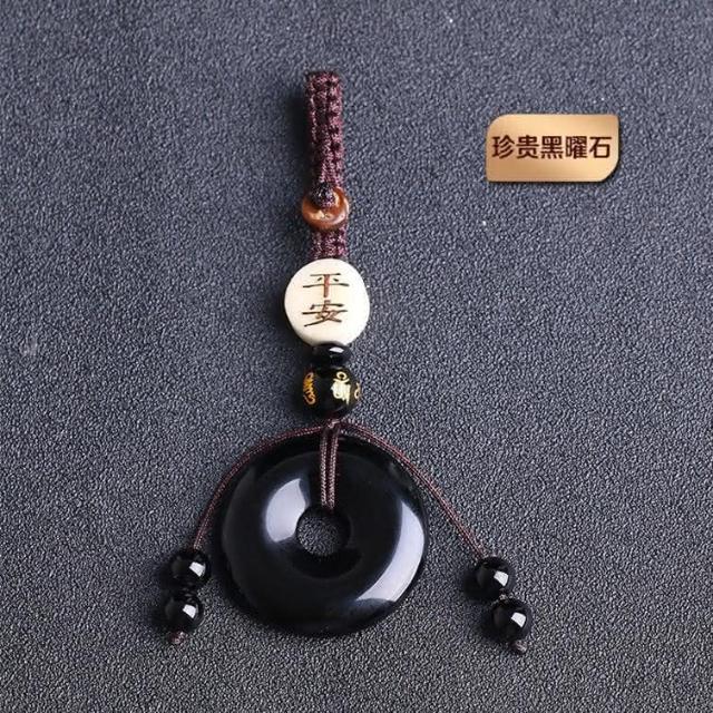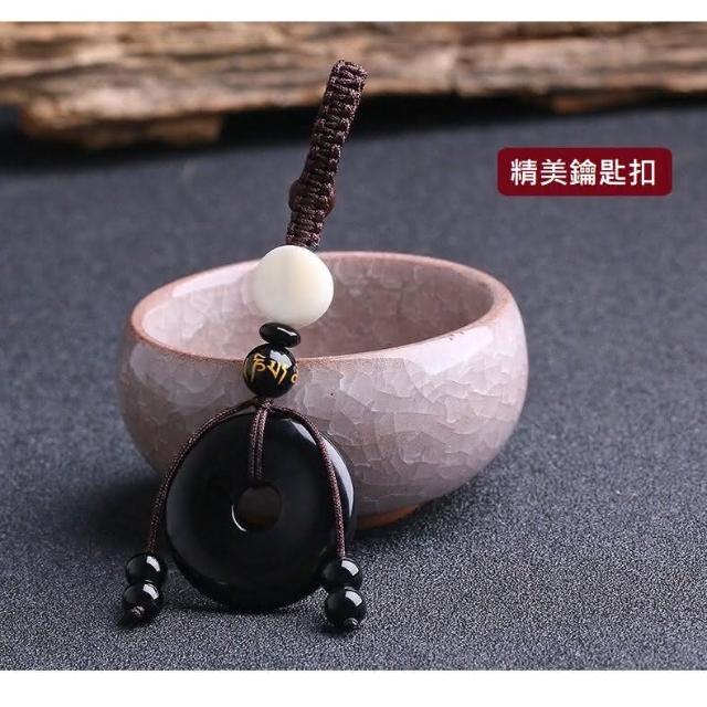 開運堂鑰匙扣 天然黑曜石平安扣保平安汽車鑰匙扣包掛鑰匙圈天然水晶飾品吉祥物情侶聖誕節情人節生日禮物