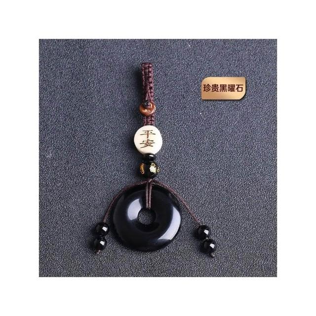 開運堂鑰匙扣 天然黑曜石平安扣保平安汽車鑰匙扣包掛鑰匙圈天然水晶飾品吉祥物情侶聖誕節情人節生日禮物