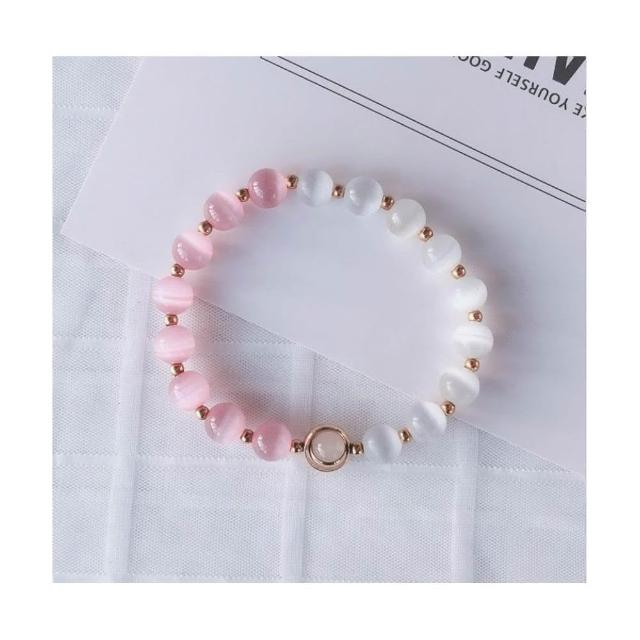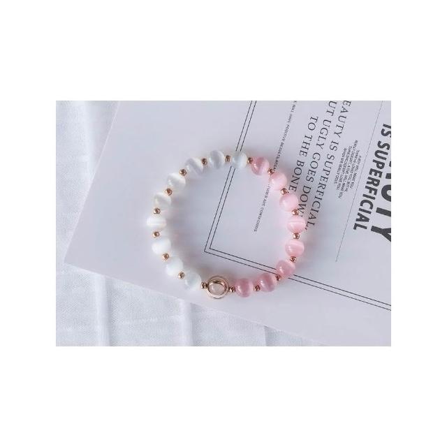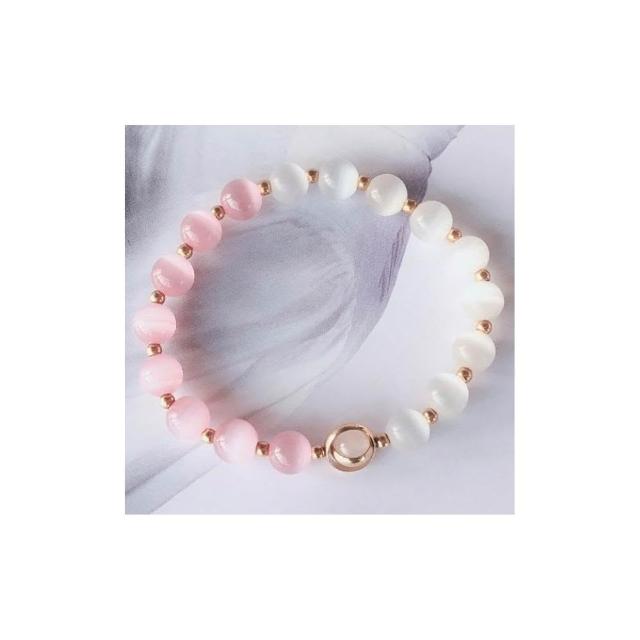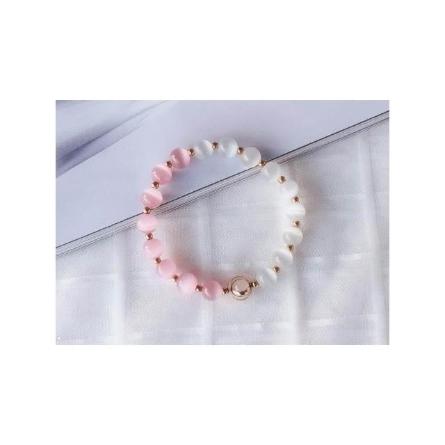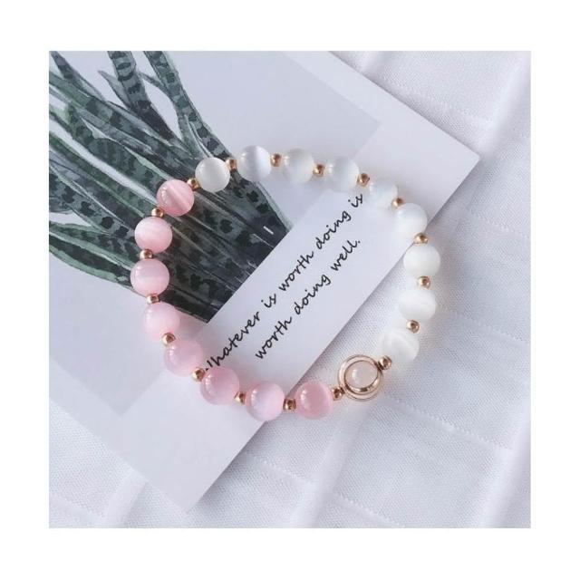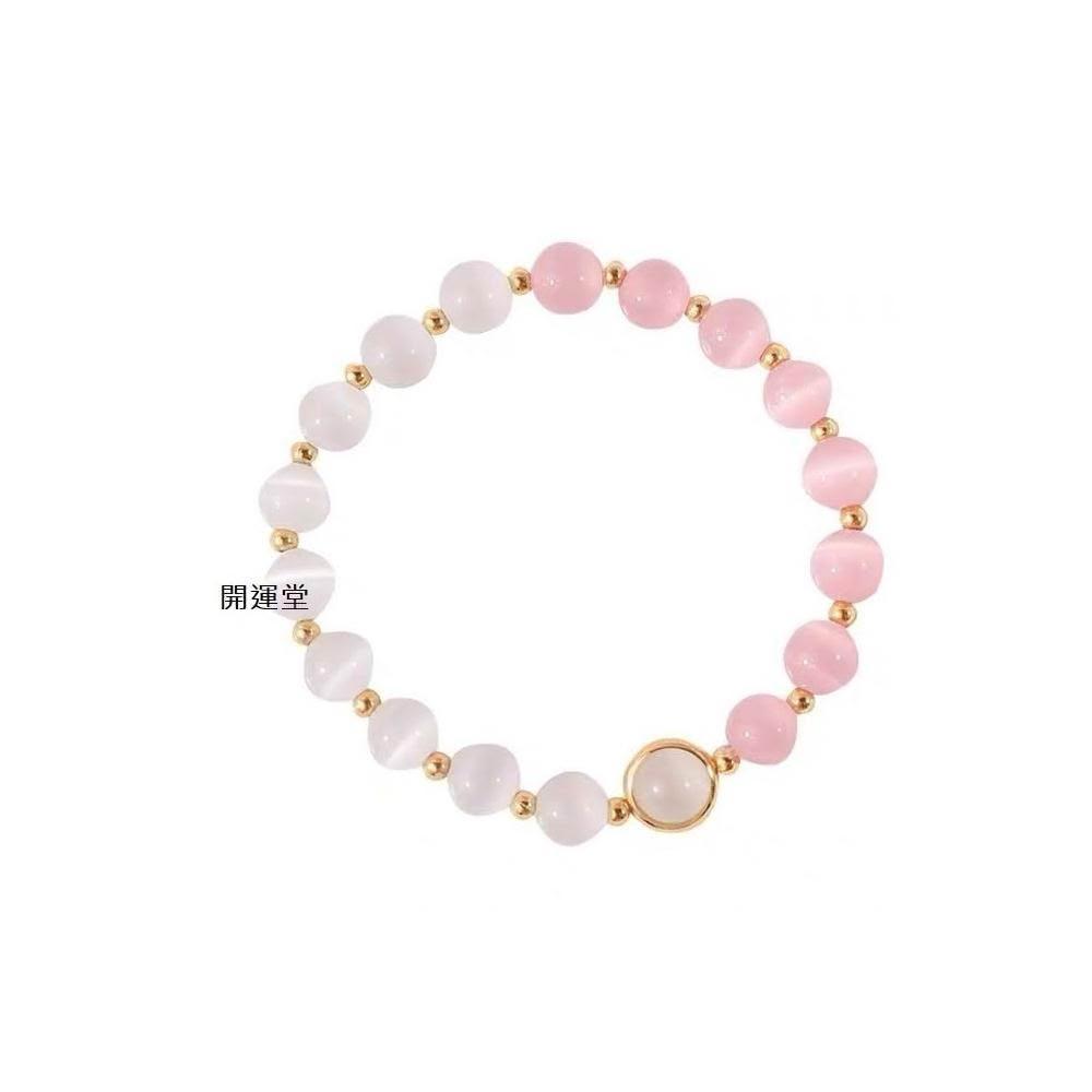 粉白貓眼石手鍊女招桃花轉運珠招財粉水晶鍍金手鍊