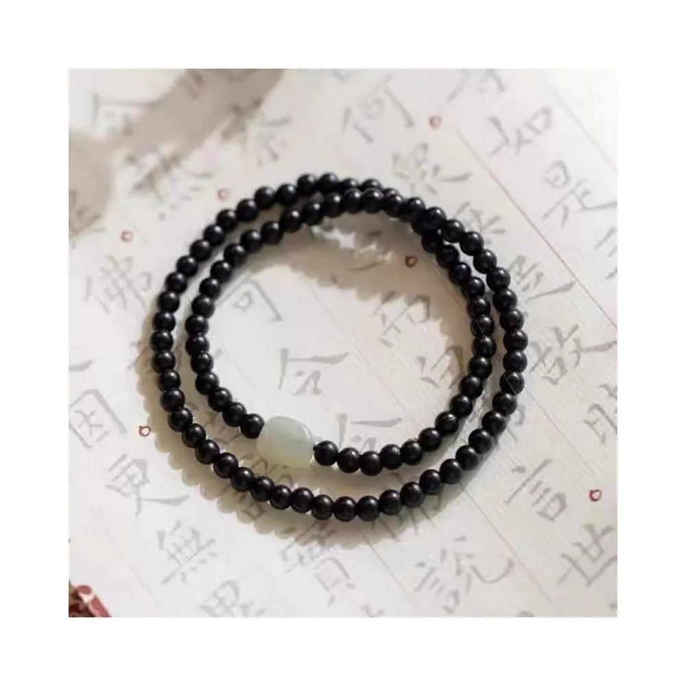 開運堂🔥現貨🔥黑檀4mm纖細佛珠手鍊簡約和田玉古風小清新仙氣檀木手串文藝女款檀木手串