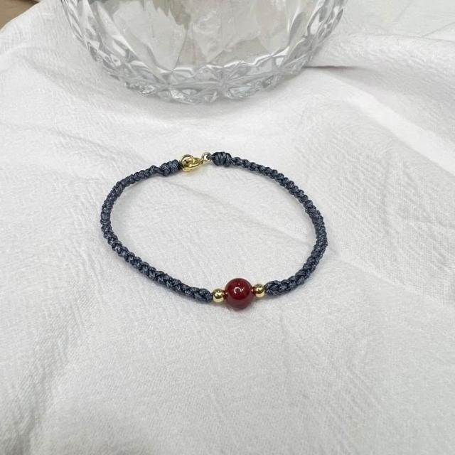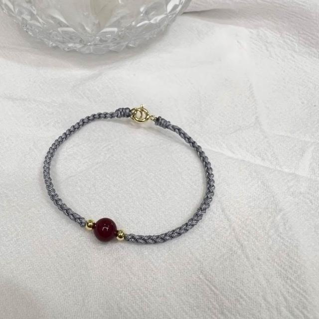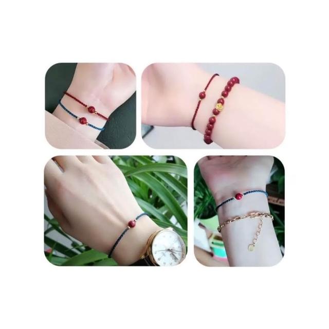 開運堂「小圓滿硃砂」開運紅繩硃砂手繩女復古細款編織紅繩手鍊幸運手鏈小圓滿手飾(開運堂)