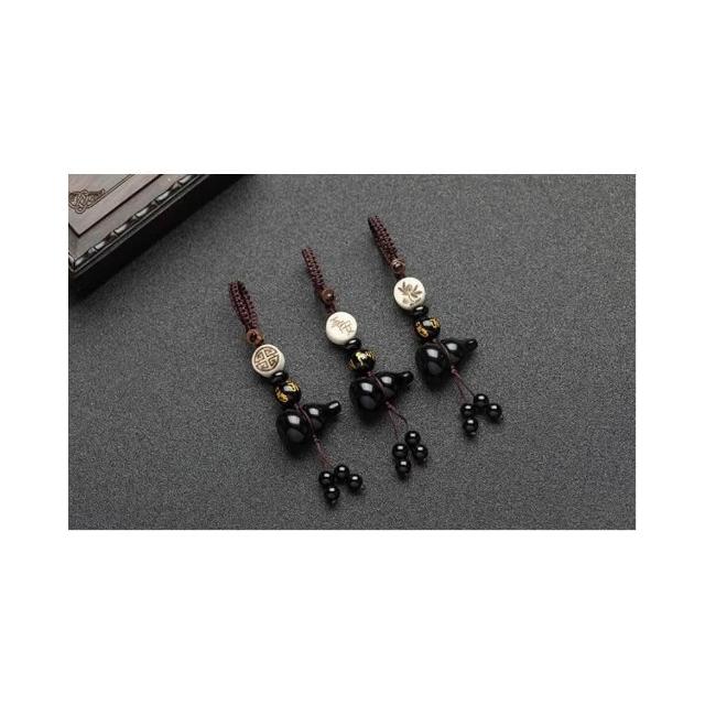 開運堂黑曜石 鑰匙扣 天然黑曜石葫蘆保平安汽車鑰匙扣挂件飾品吊墜情侶情人節聖誕節生日禮物(開運堂)