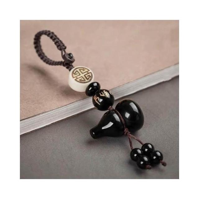 開運堂黑曜石 鑰匙扣 天然黑曜石葫蘆保平安汽車鑰匙扣挂件飾品吊墜情侶情人節聖誕節生日禮物(開運堂)