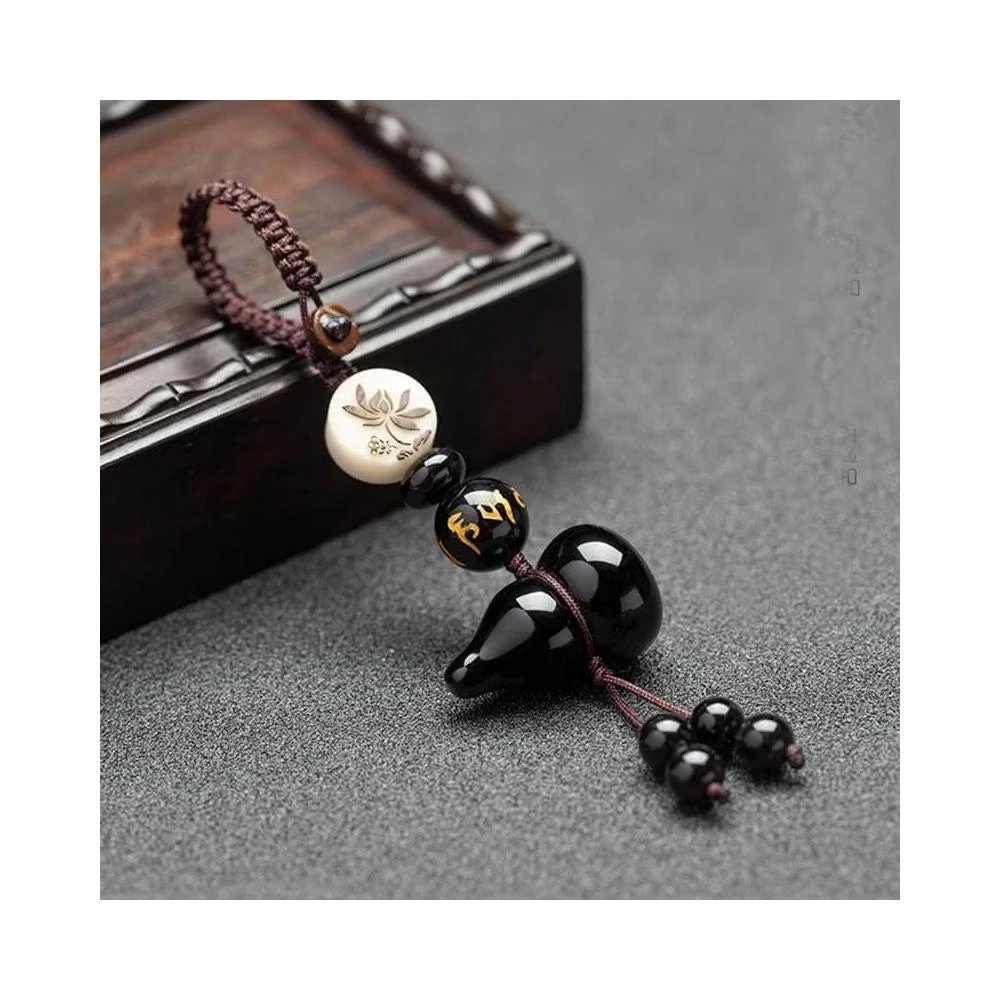 開運堂黑曜石 鑰匙扣 天然黑曜石葫蘆保平安汽車鑰匙扣挂件飾品吊墜情侶情人節聖誕節生日禮物(開運堂)