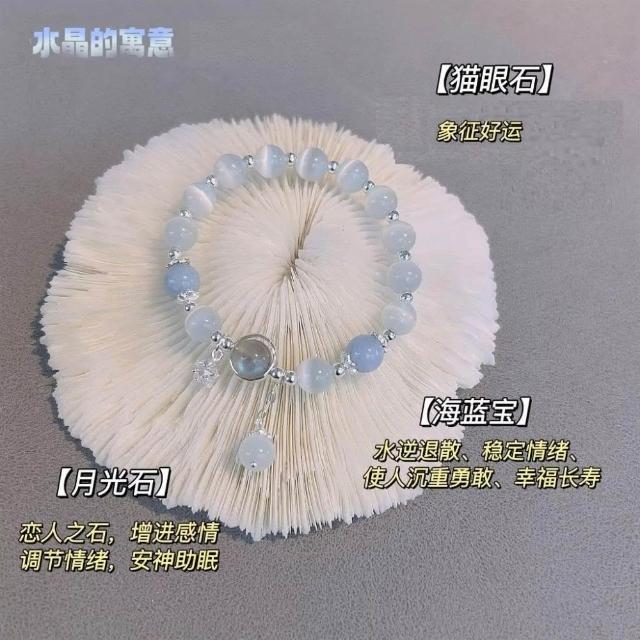 開運堂🔥現貨🔥好運水逆退散貓眼石海藍寶月光石水晶女手鍊輕奢彈性手串交換禮物開運堂