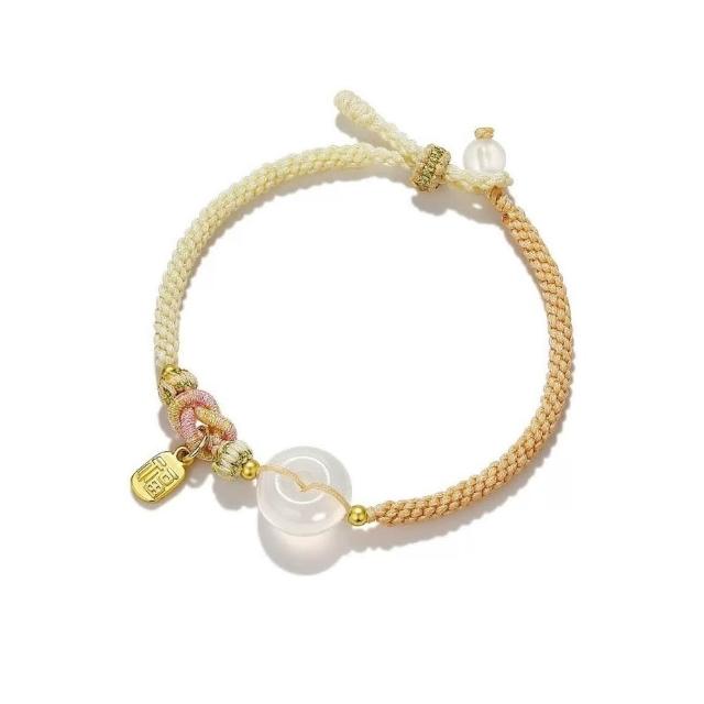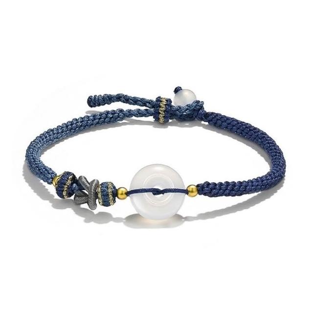 開運堂🔥現貨🔥 順遂平安 天然白瑪瑙如意平安扣好運福牌情侶手工編織手繩開運堂