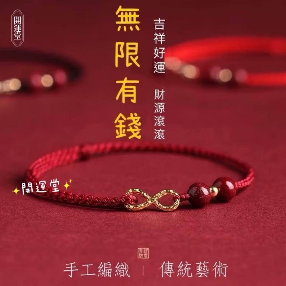 開運堂🔥現貨🔥硃砂 無限有錢 本命年紅繩手鍊女無限有錢編織手繩轉運珠腳鍊情侶禮物硃砂