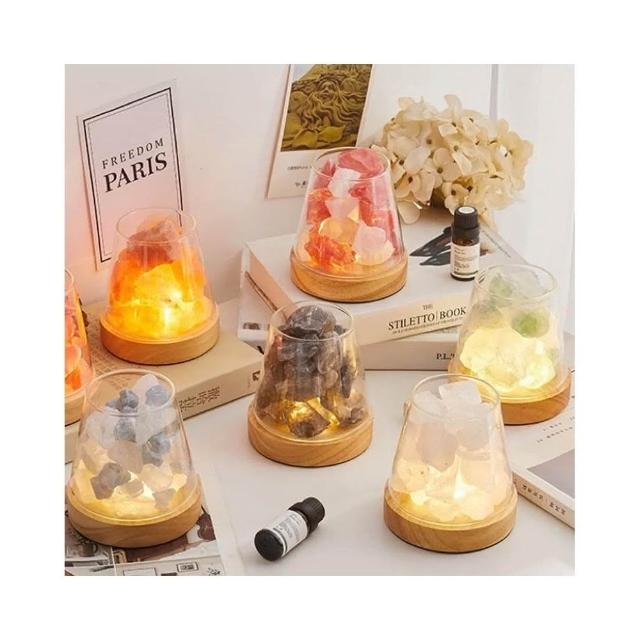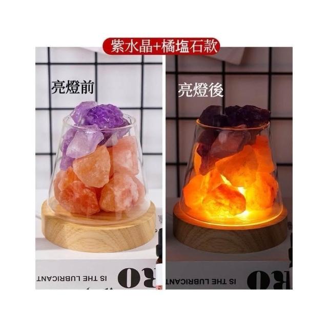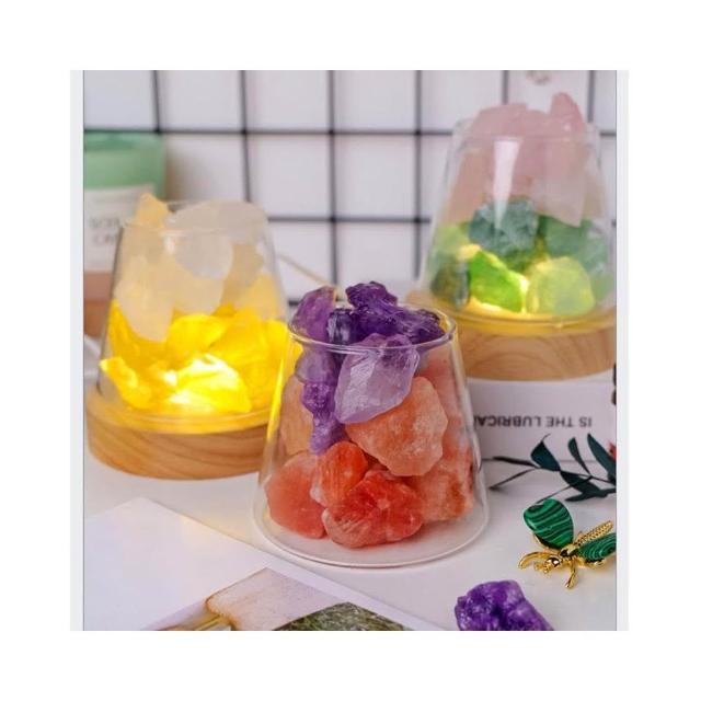 開運堂床邊燈原礦火山杯水晶鹽燈擴香燈 玄關擺飾招財 水晶原礦 小夜燈底座USB燈座LED燈座 天然水晶燈 聖誕節交換禮物
