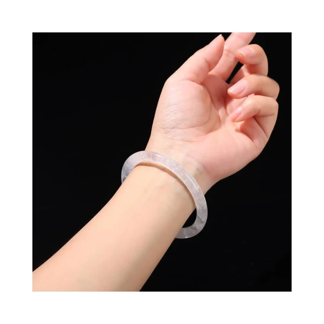 開運堂運堂水晶🔥手鐲 天然白水晶手鐲寬版圓條雪花晶體交換禮物手飾批發