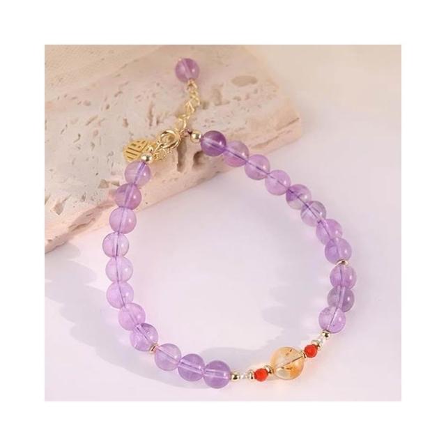 開運堂現貨 紫水晶手鍊輕奢小眾極細轉運珠招財黃水晶南紅手串原創設計首飾