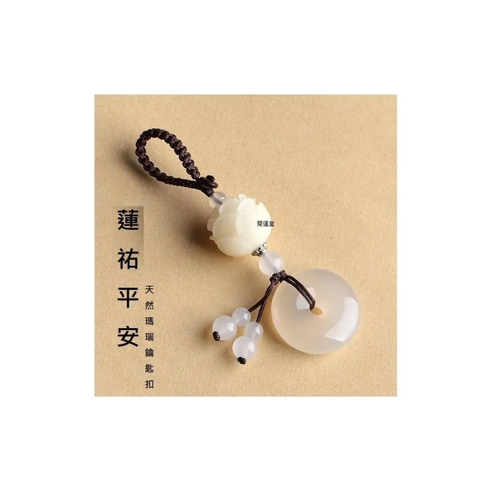 開運堂現貨 瑪瑙玉髓平安扣汽車鑰匙挂件菩提蓮花鑰匙扣創意鑰匙鏈包掛飾(開運堂)