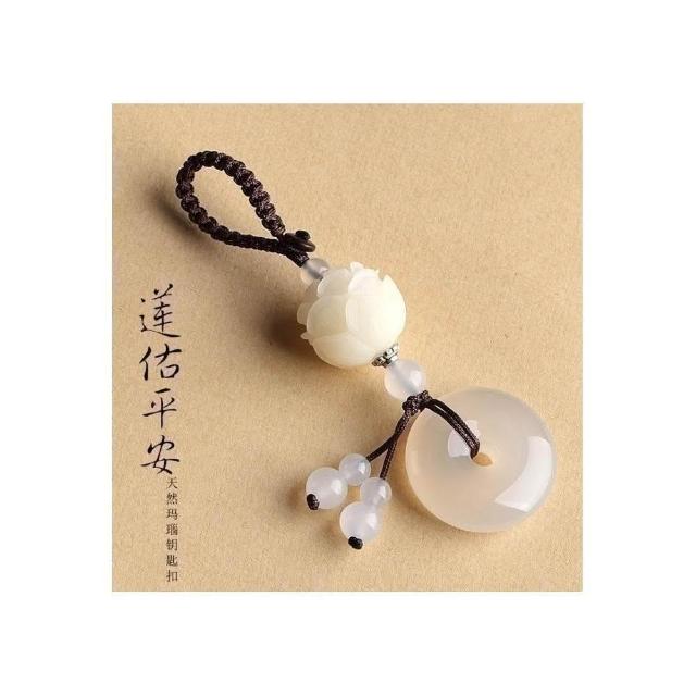 開運堂現貨 瑪瑙玉髓平安扣汽車鑰匙挂件菩提蓮花鑰匙扣創意鑰匙鏈包掛飾(開運堂)
