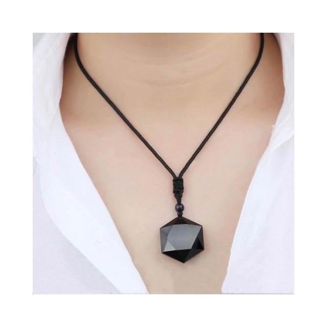 開運堂多款天然礦石 黃水晶 拉長石項鍊 六角星黑曜石 靈擺能量石黑曜石吊墜項鍊星空系列六角星海六茫星交換禮物