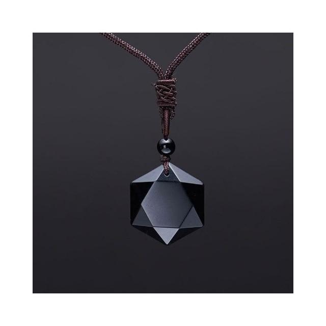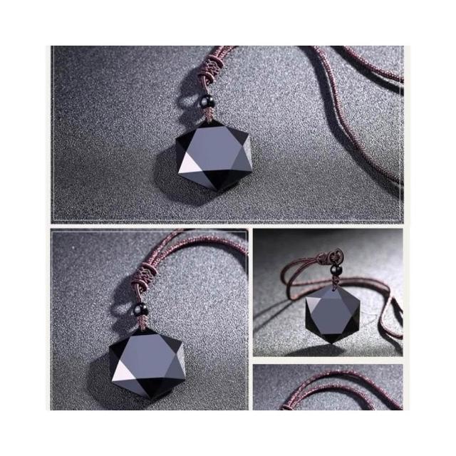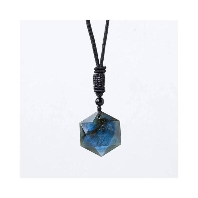 開運堂多款天然礦石 黃水晶 拉長石項鍊 六角星黑曜石 靈擺能量石黑曜石吊墜項鍊星空系列六角星海六茫星交換禮物