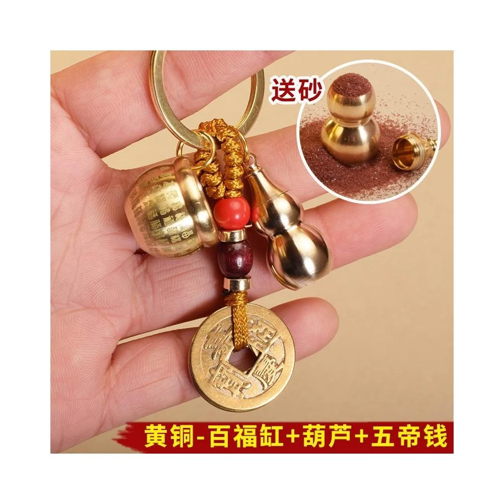 開運堂黃銅鑰匙扣百福缸五帝錢葫蘆車鎖匙挂件招財旺運防小人