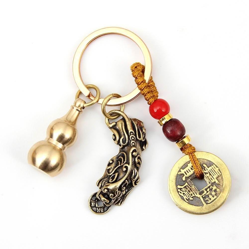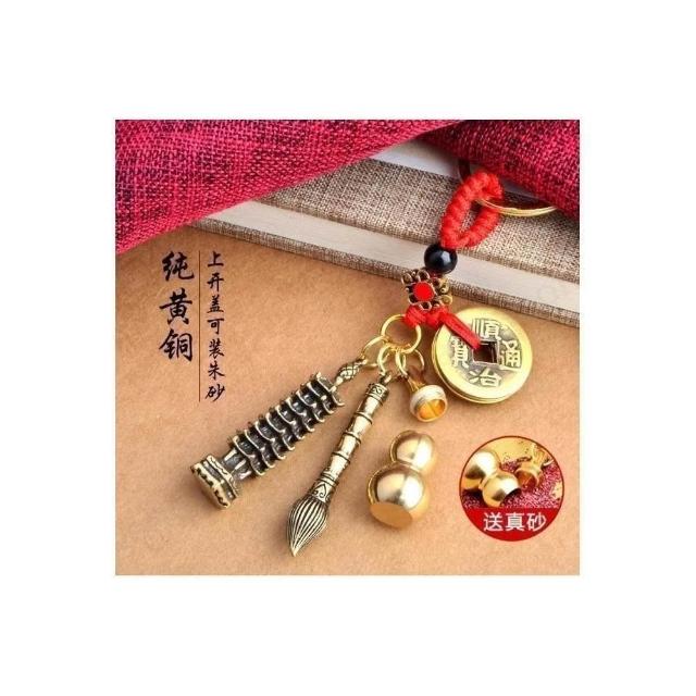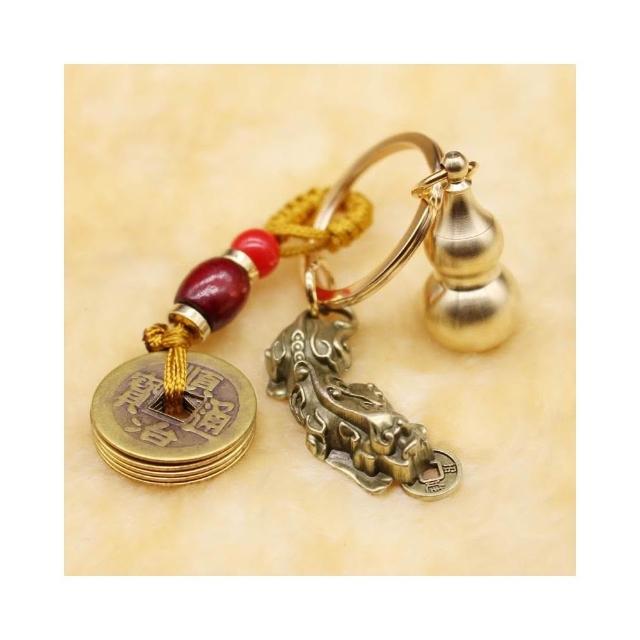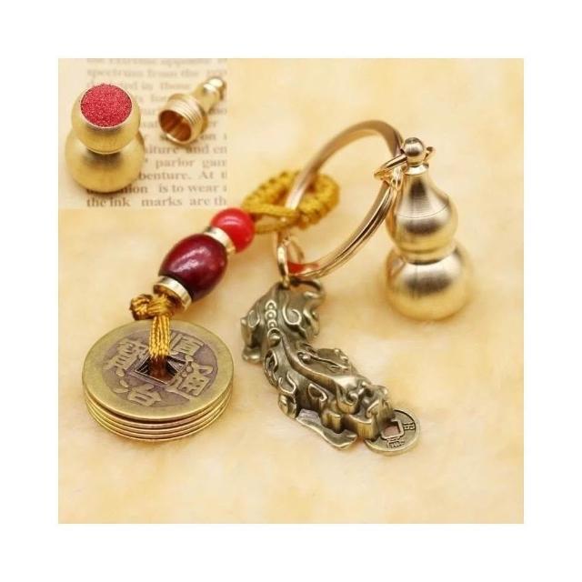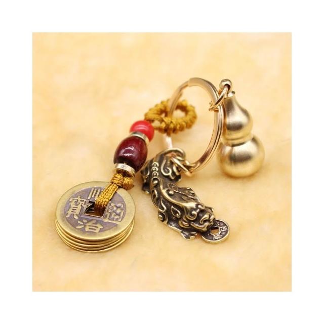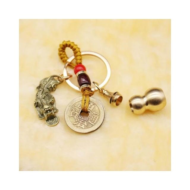 開運堂現貨 純銅鑰匙扣黃銅葫蘆上開口咬錢招財貔貅木珠五帝錢汽車飾品挂件開運堂