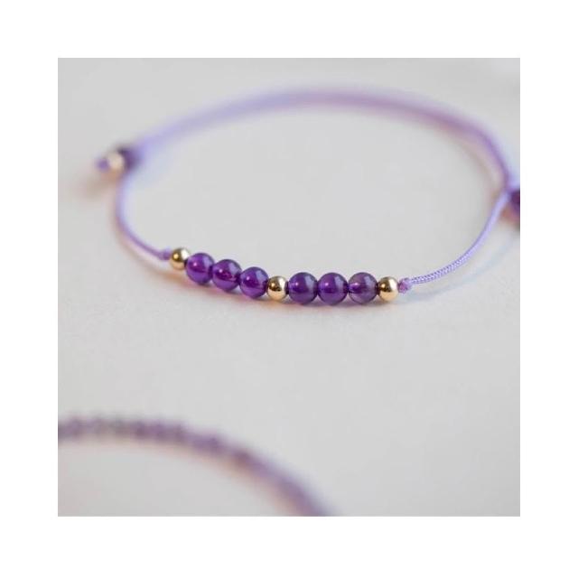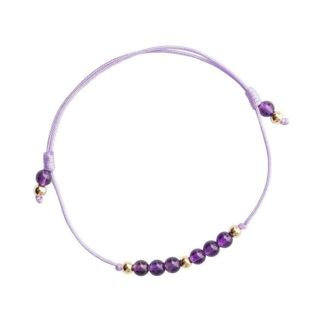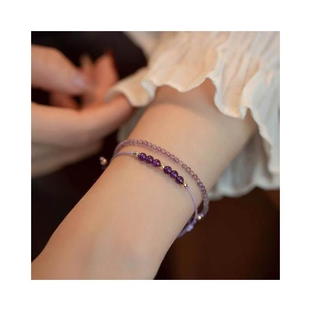 開運堂天然紫水晶手工編織手繩上岸幸運水晶手鍊禮物鍍14k輕奢疊戴手鍊女交換禮物水晶手繩