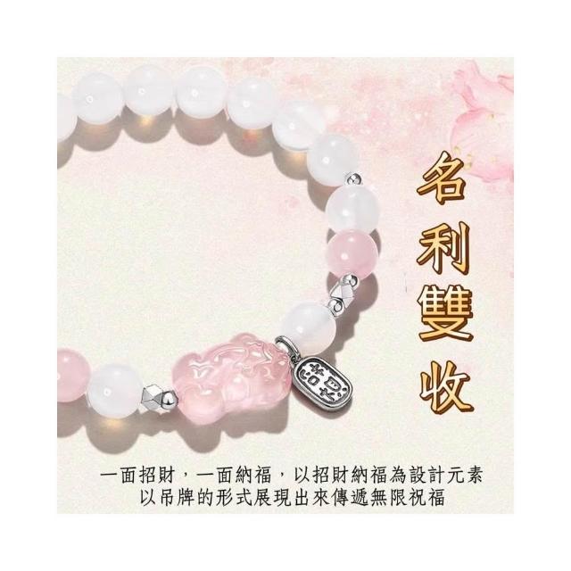 開運堂 招財貔貅粉水晶白瑪瑙手鍊女生轉運珠瑪瑙吞金獸粉晶手串女款串珠招財貔貅