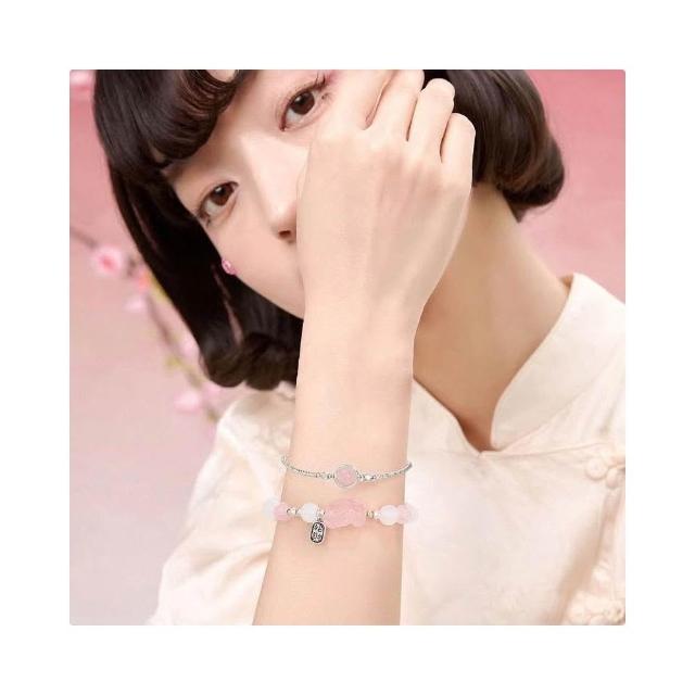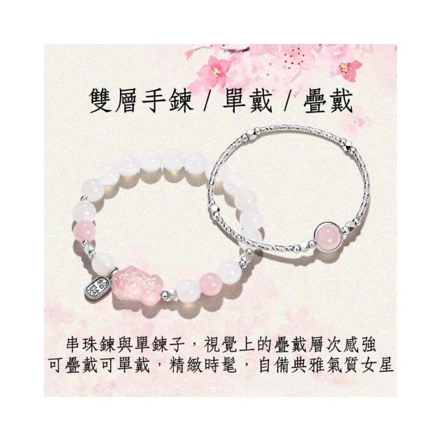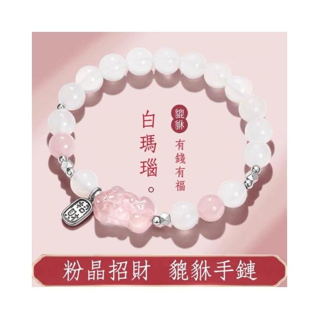 開運堂 招財貔貅粉水晶白瑪瑙手鍊女生轉運珠瑪瑙吞金獸粉晶手串女款串珠招財貔貅