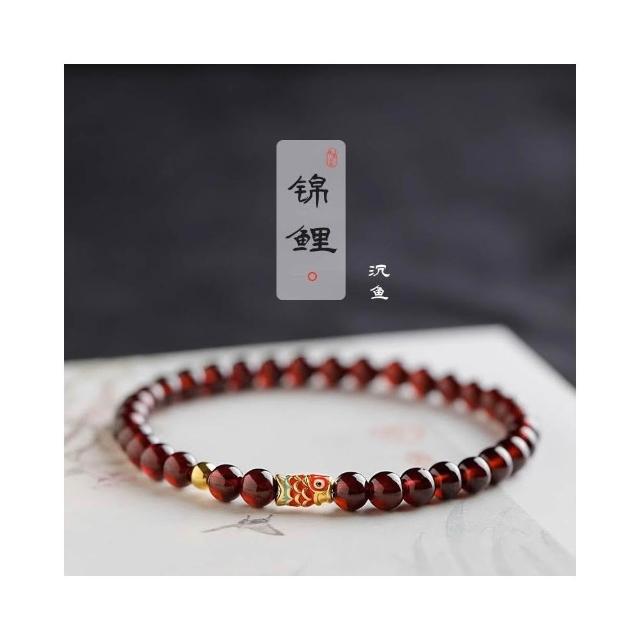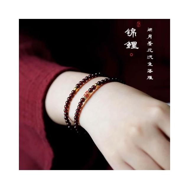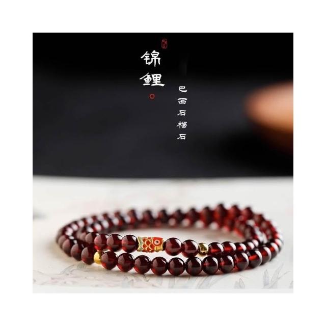 開運堂錦鯉 天然酒紅石榴石手鍊女輕奢小眾精緻S925銀錦鯉轉運珠手串多圈 開運堂