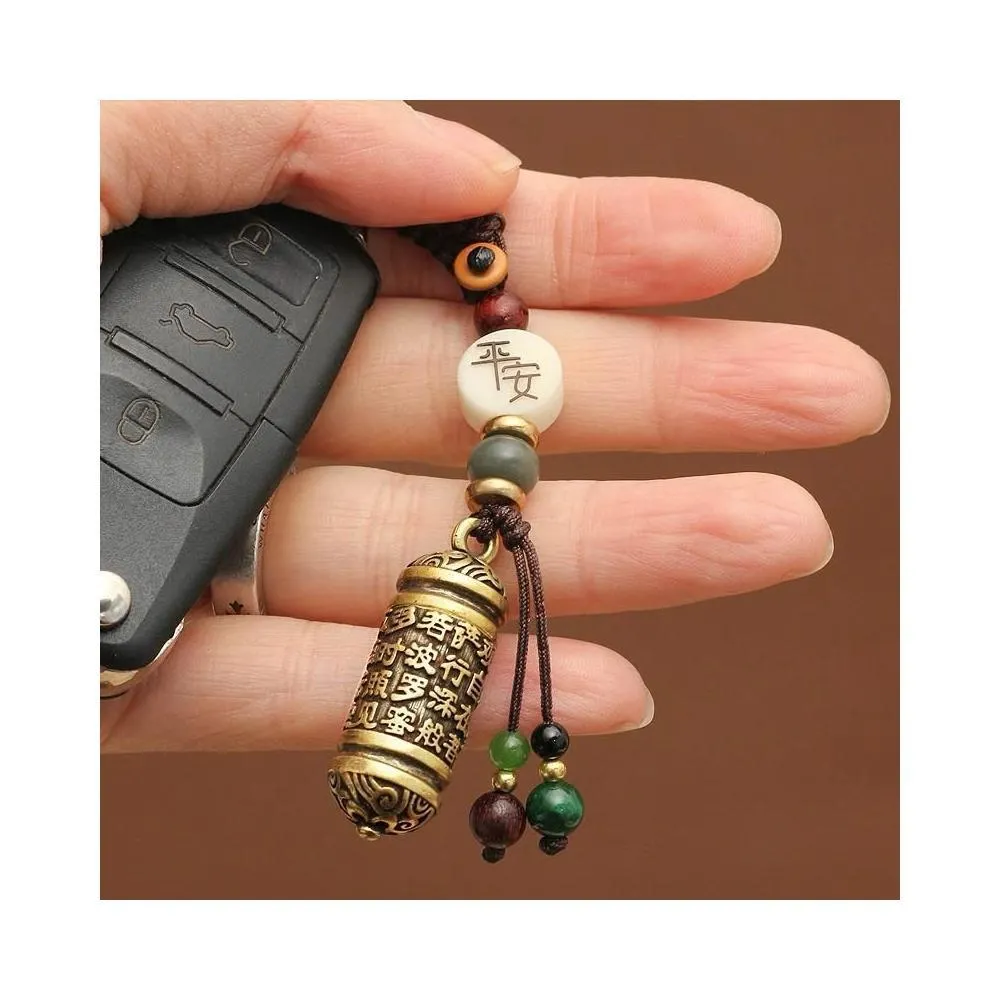 開運堂現貨 解太歲保平安汽車鑰匙挂件黃銅心經平安護身符個性創意男女士款手工高檔鑰匙圈