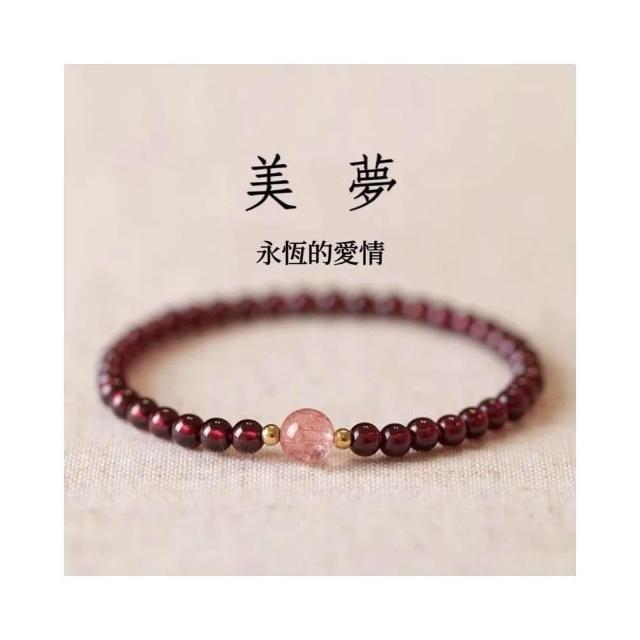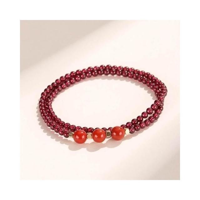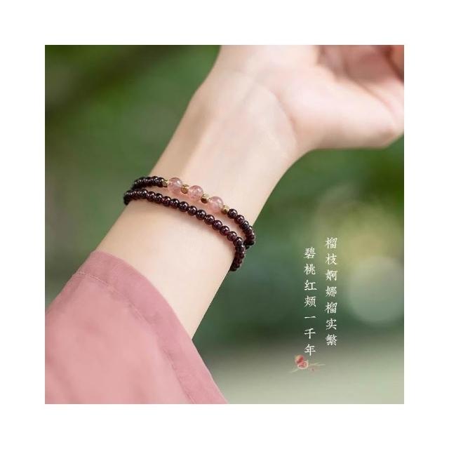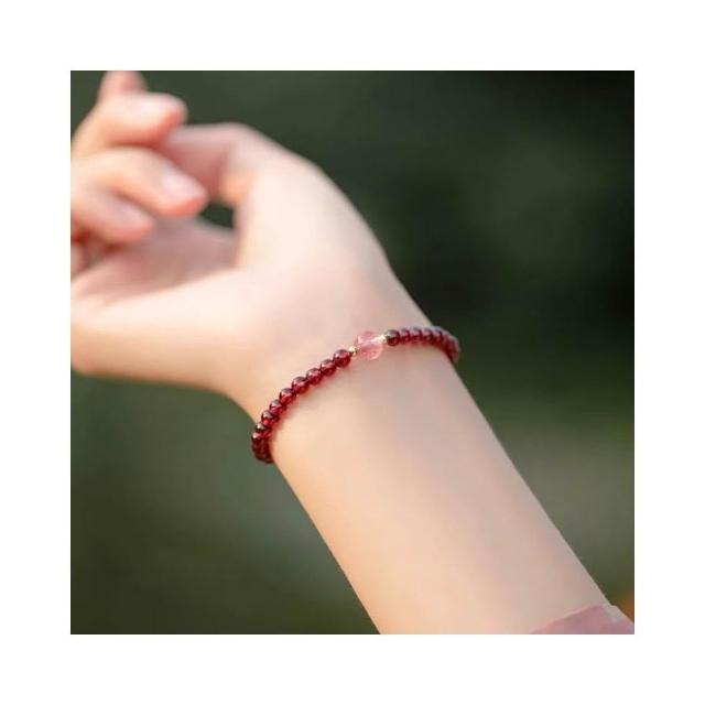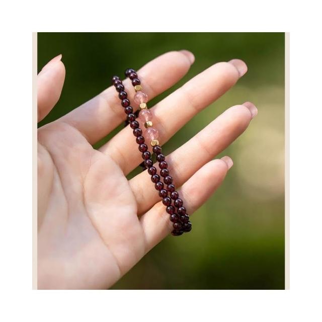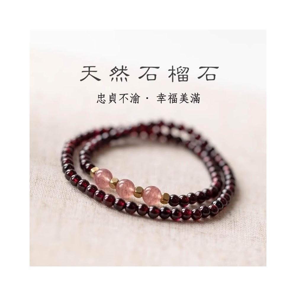 開運堂現貨 天然酒紅真石榴石手鍊女草莓晶轉運珠手飾女多圈多層水晶手串(開運堂)