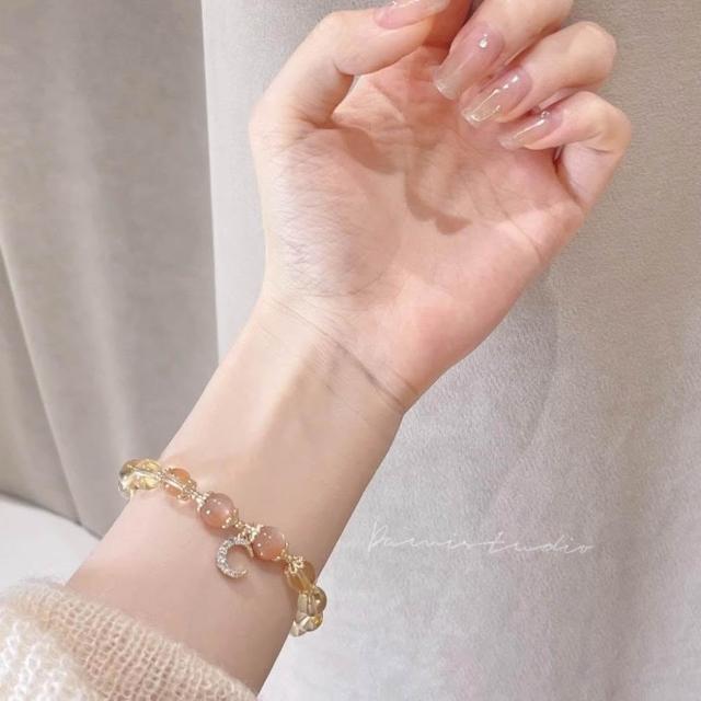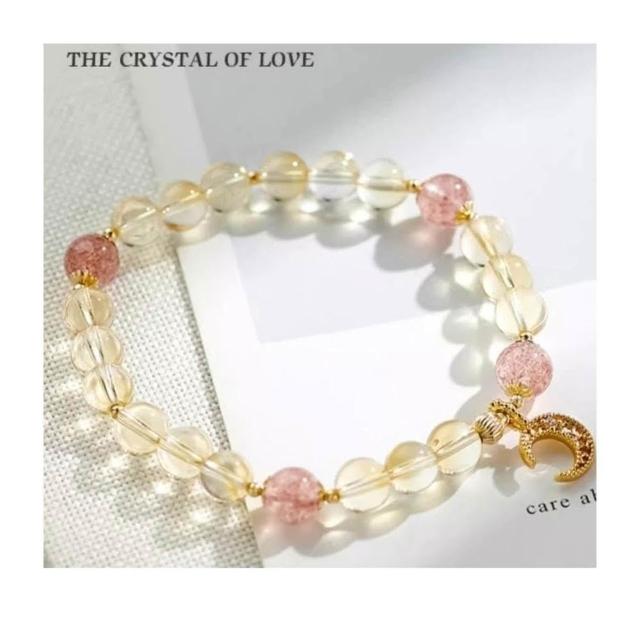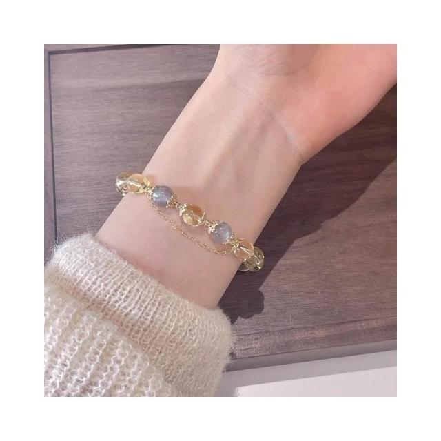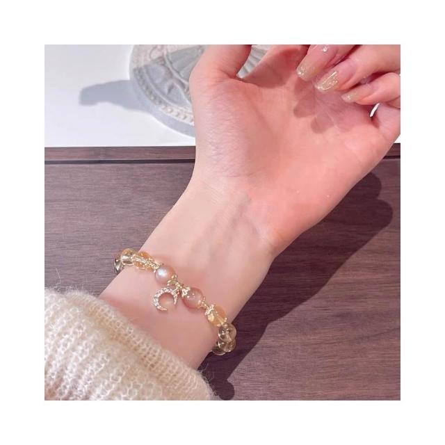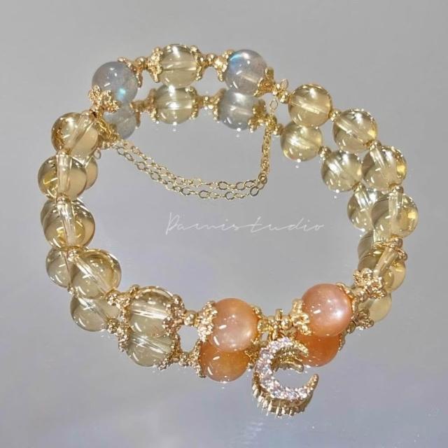 開運堂8mm黃水晶手鍊月光石金太陽鍍14K金髮財水晶手串 開運堂