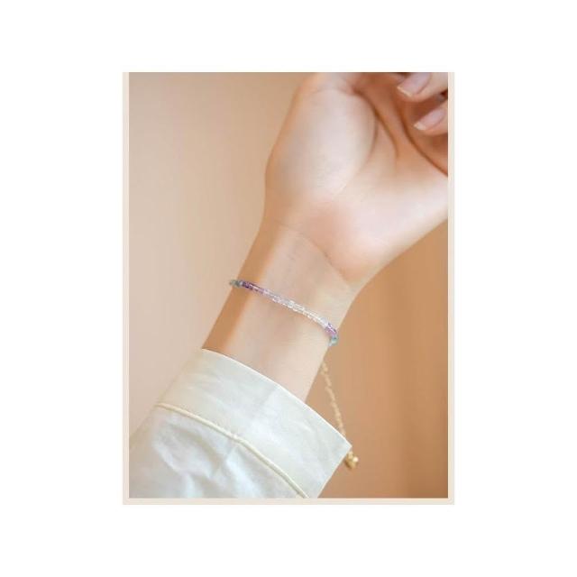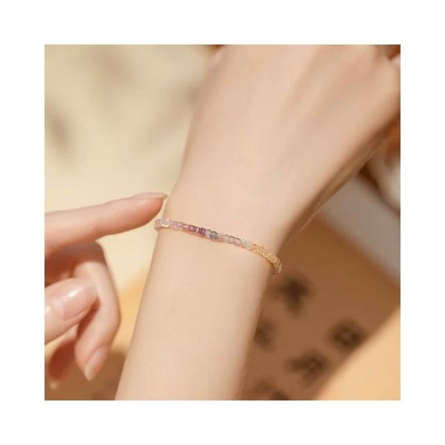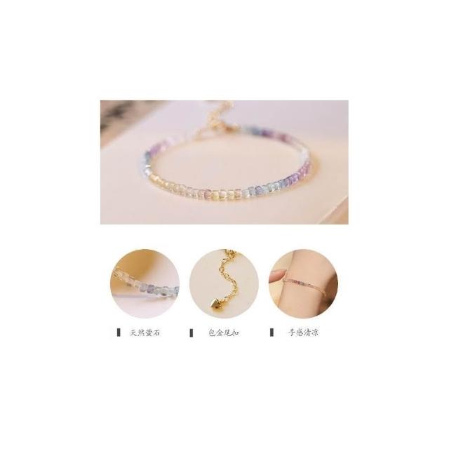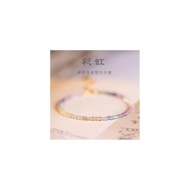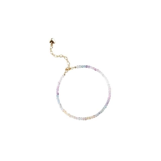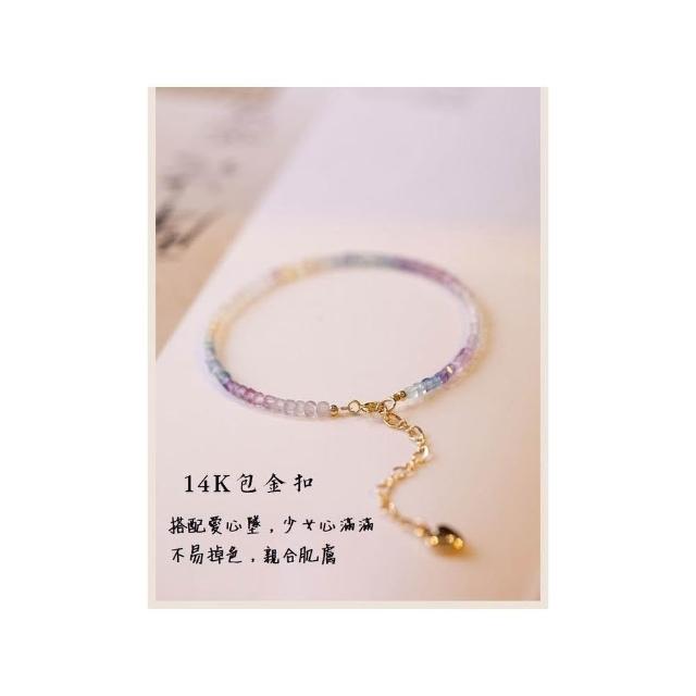 開運堂現貨 極細2毫米彩虹螢石手鍊女旺夫石原石14k鍍金彩虹色春夏禮物