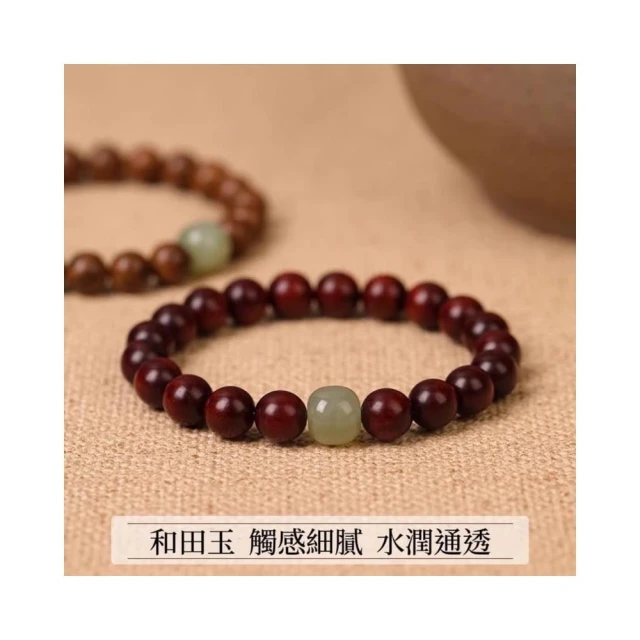 開運堂現貨 檀木 紫檀手串女生黑檀木佛珠金絲楠木手鍊和田玉