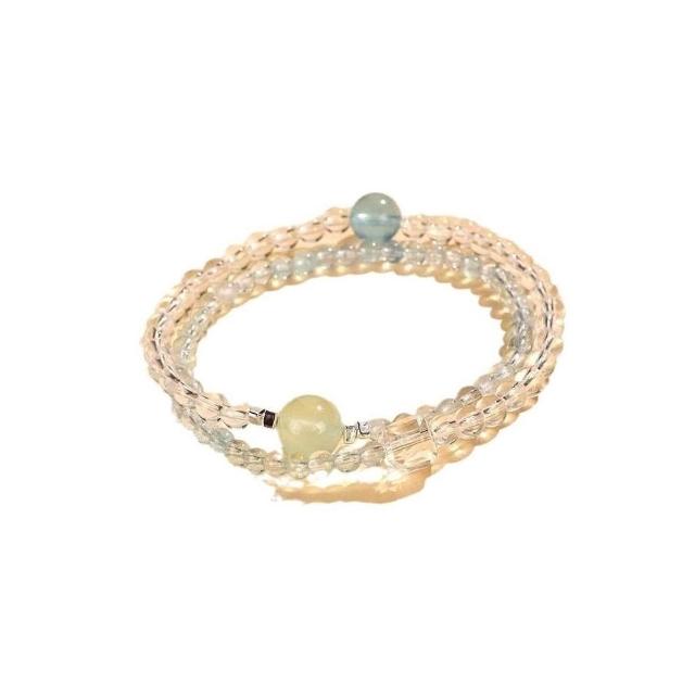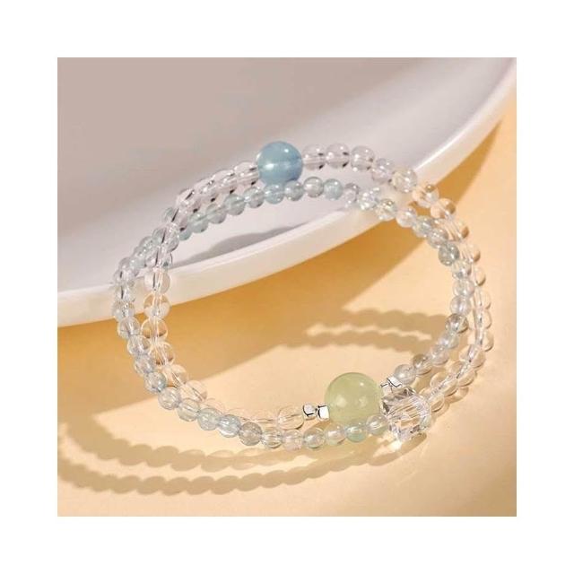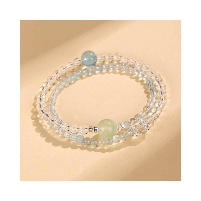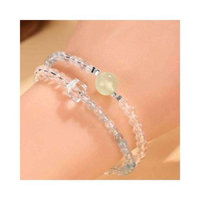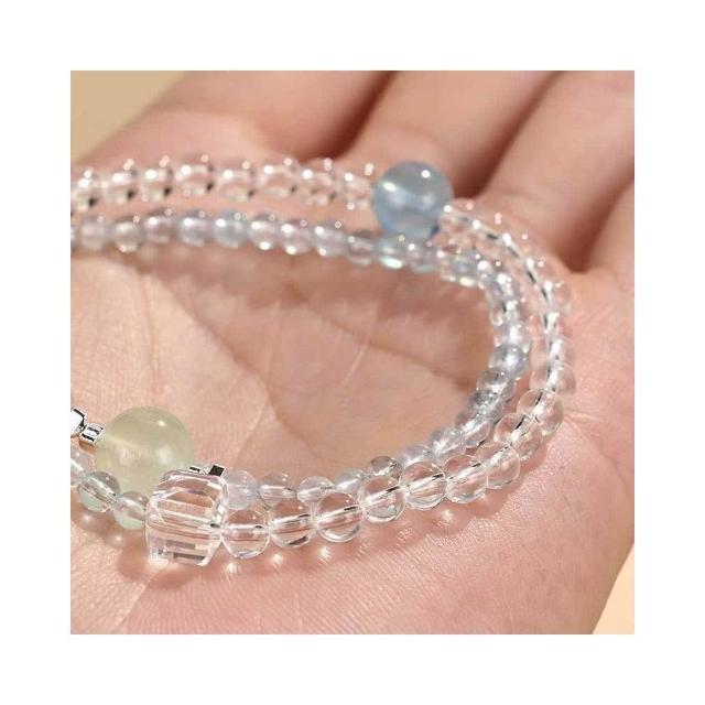 開運堂現貨 希望之石 白水晶方糖串珠手鍊海藍寶葡萄石雙圈手串 開運堂