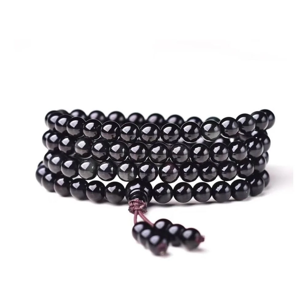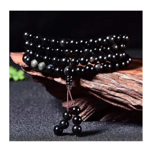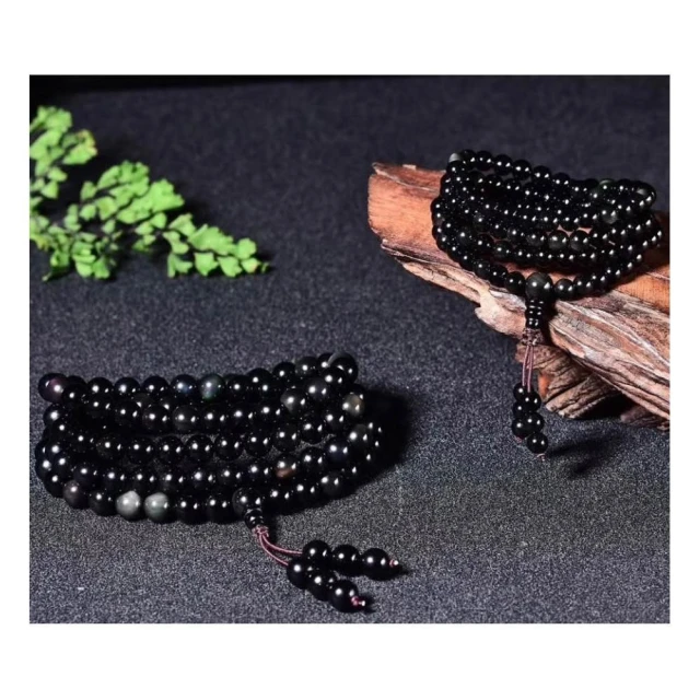 開運堂天然黑曜石108顆佛珠手鍊彩曜石手鍊念珠四圈彩虹眼