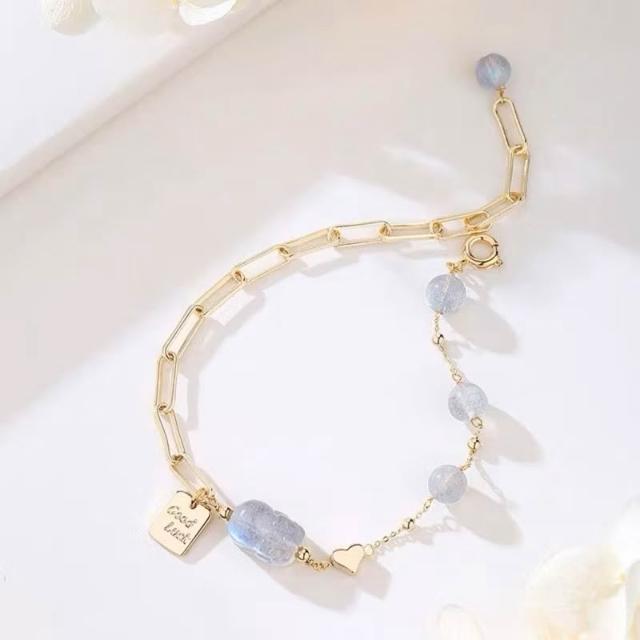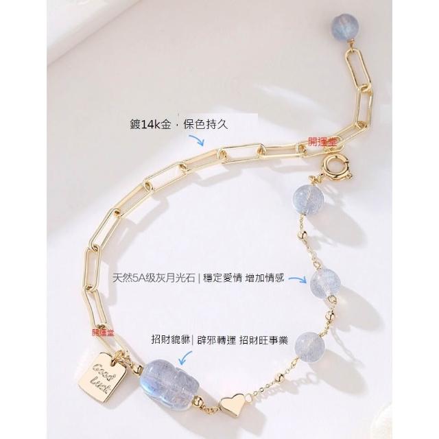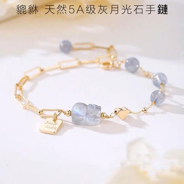 開運堂現貨 6mm天然灰月光石貔貅手鍊女轉運招財水晶手串INS小眾設計感 開運堂