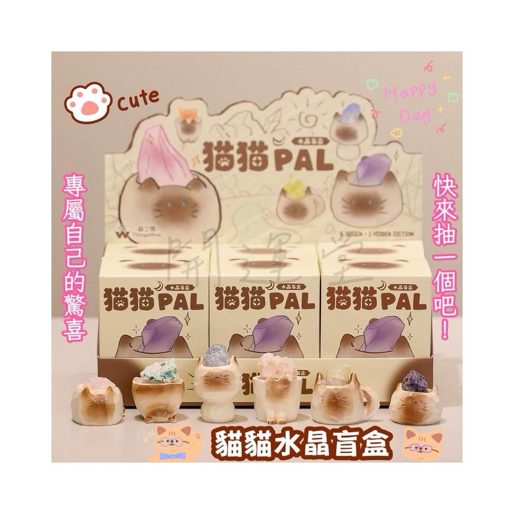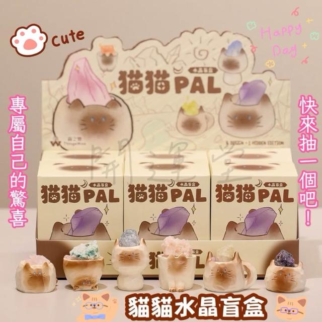 開運堂 現貨🔥卡通可愛暹羅貓貓貓原礦水晶礦石水晶天然水晶盒玩盲盒盲抽創意水晶擺件桌面裝飾禮物一中盒6入情侶