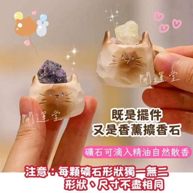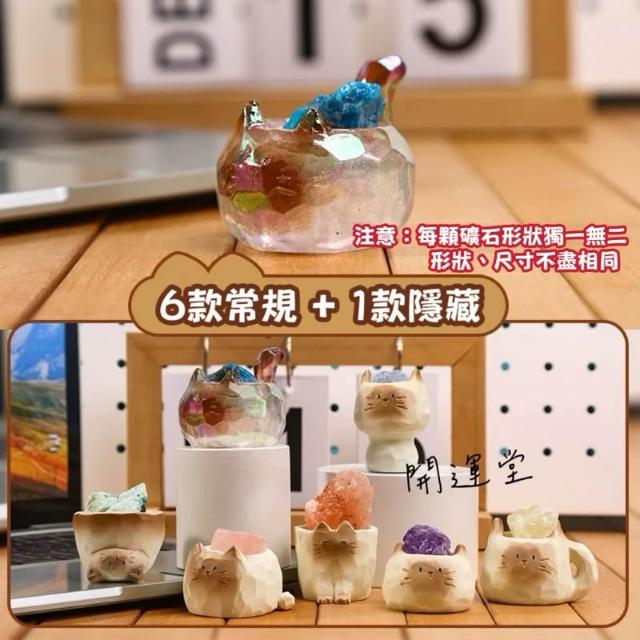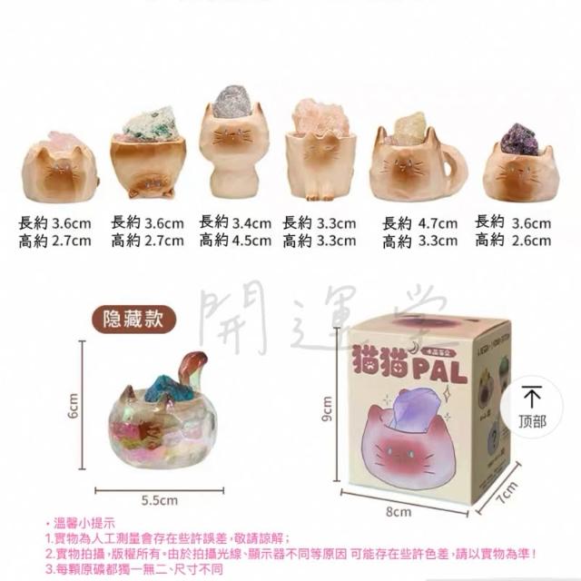 開運堂 現貨🔥卡通可愛暹羅貓貓貓原礦水晶礦石水晶天然水晶盒玩盲盒盲抽創意水晶擺件桌面裝飾禮物一中盒6入情侶