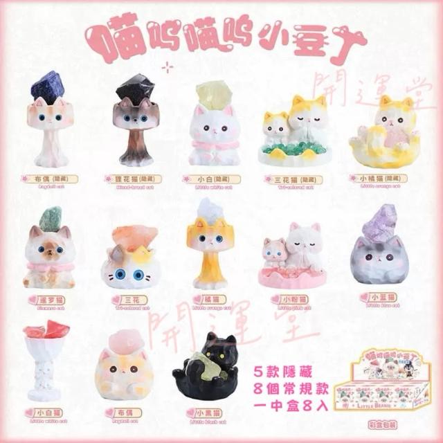 開運堂🔥現貨🔥可愛喵嗚喵嗚小豆丁貓咪原礦水晶礦石水晶天然水晶盒盲盒盲抽創意水晶擺件桌面裝飾禮物一中盒6入