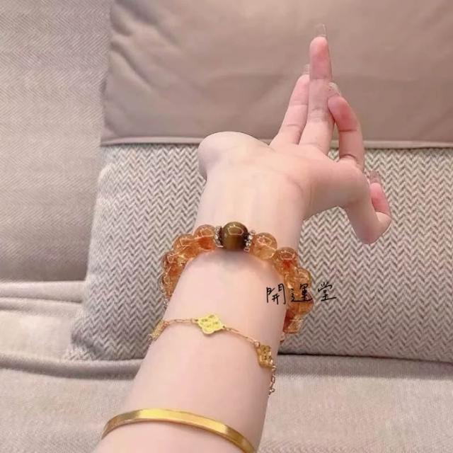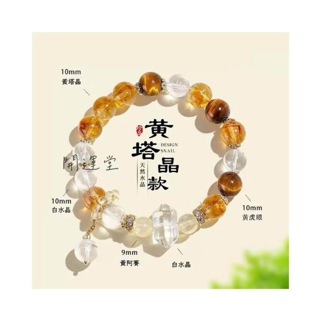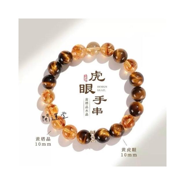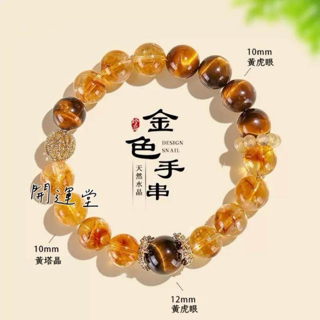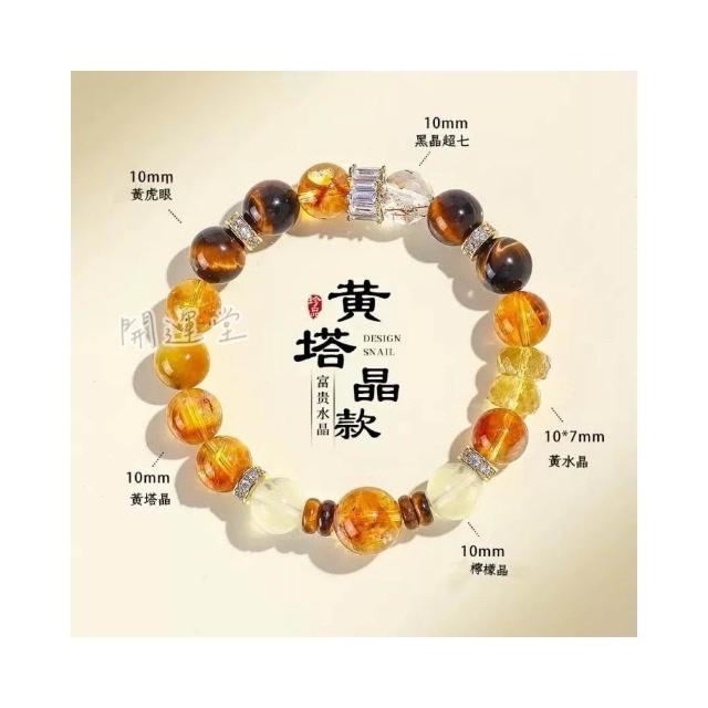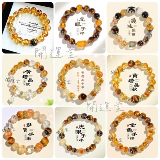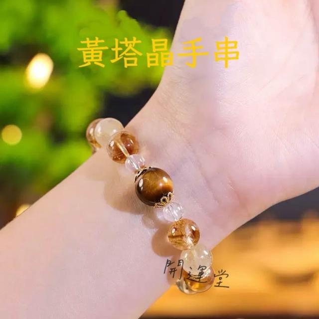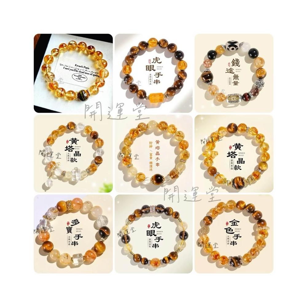 開運堂【附禮盒】🔥招財天然黃塔晶金髮晶串珠水晶手鍊黃水晶黃虎眼手串天然水晶手鍊手串招財手鍊防小人手招桃花手鍊水晶手串手鏈