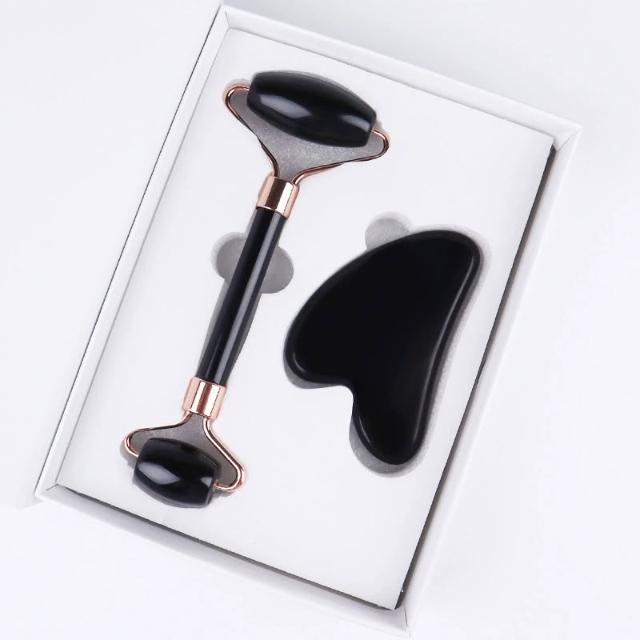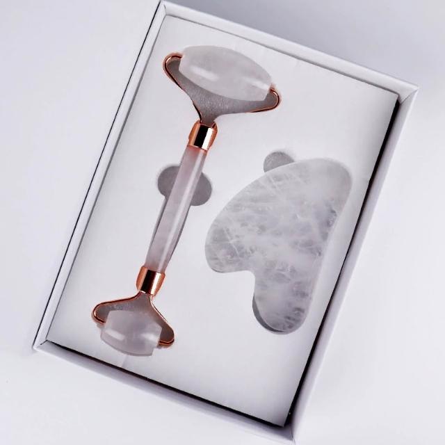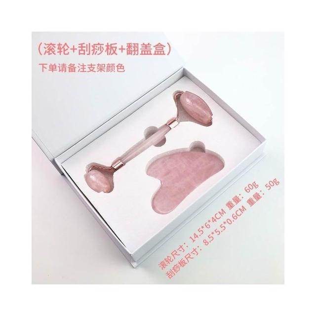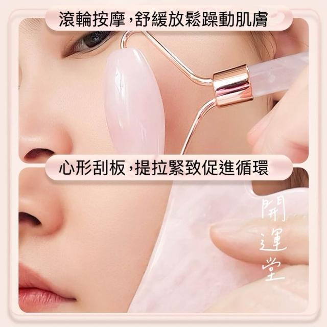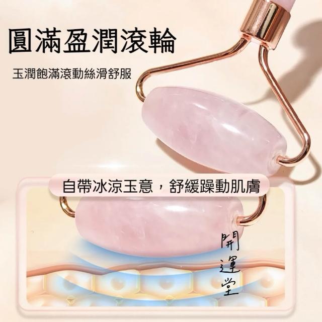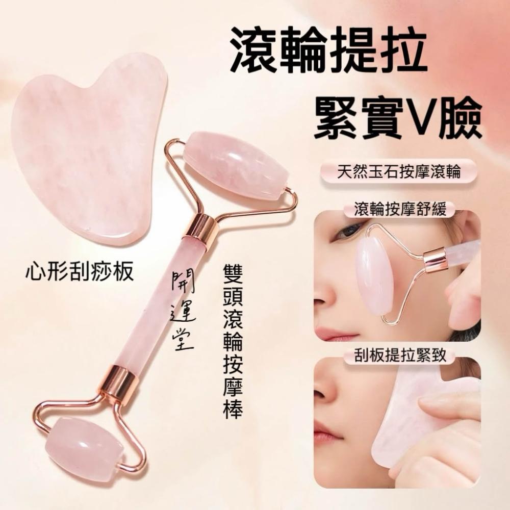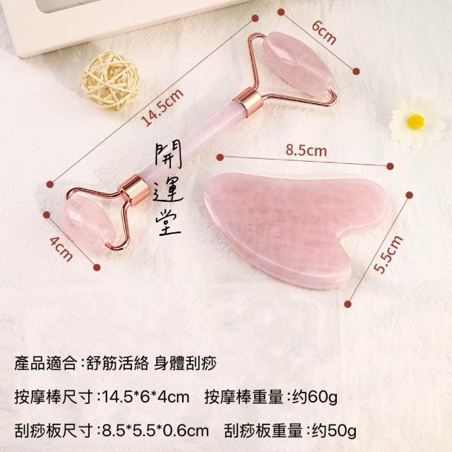 開運堂水晶刮痧板 粉晶玉石雙頭滾輪 水晶滾輪按摩器 瘦臉 臉部按摩刮痧組合