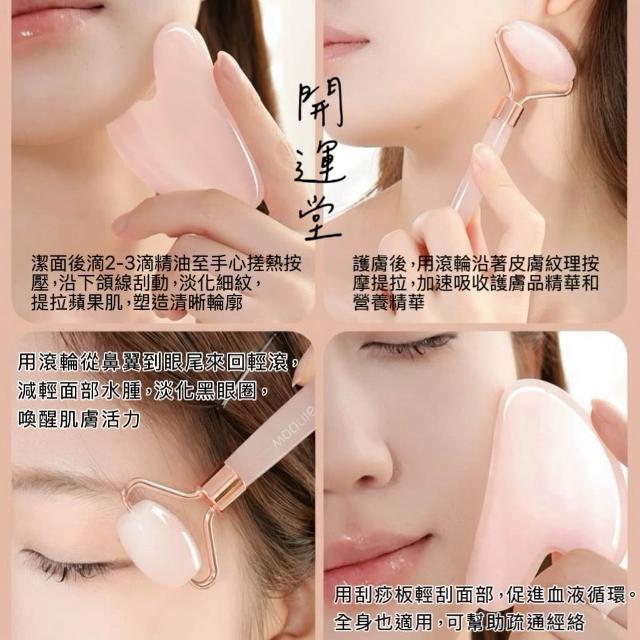 開運堂水晶刮痧板 粉晶玉石雙頭滾輪 水晶滾輪按摩器 瘦臉 臉部按摩刮痧組合