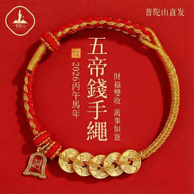 開運堂手工編繩(贈禮盒)🔥紫南宮過爐🔥五帝錢紅繩手鍊手工編織繩本命年小紅繩仿黃金手繩