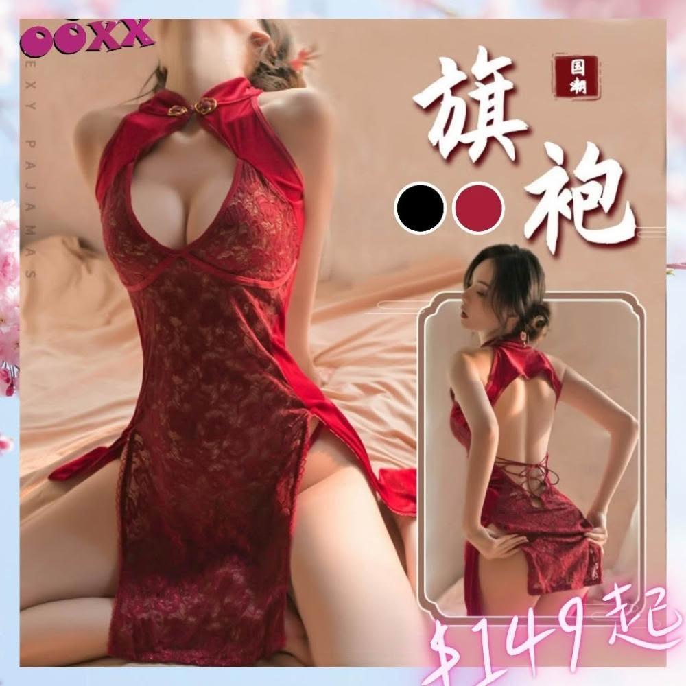明天到貨 綁帶高衩情趣旗袍 兩色 ✨蕾絲刺繡 性感旗袍 國潮情趣 挑逗誘惑 旗袍套裝 中國風 透視綁帶睡裙 爆乳睡裙