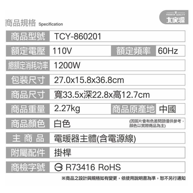 大家源浴室起居兩用電暖器 TCY-860201 大家源 電暖器 電暖爐 老人小孩 保暖 壁掛暖風機 迷你 冷氣團 寒流 暖風機